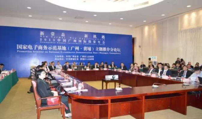 2015中国广州国际投资年会——国家电子商务示范基地(广州·黄埔)主题推介分论坛,市长陈建华在会上做主题推介,亚新平台-亚新(中国)一站式服务平台董事长官金仙女士就国家电子商务示范基地——状元谷电子商务产业园做重点介绍;亚马逊、省电子商务商会、京东商城、酒仙网、苏宁云商等知名电商企业代表在会上发言交流。